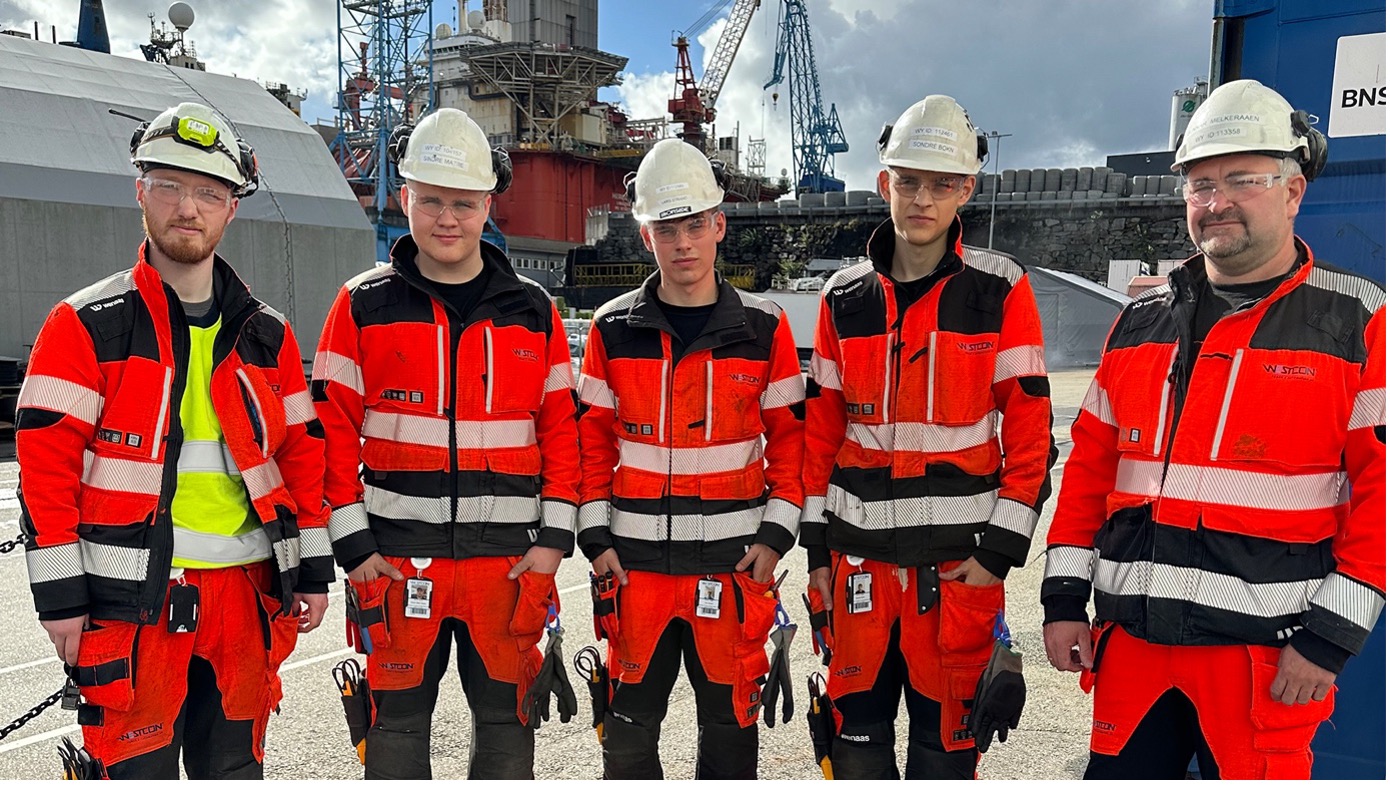 Da fire nye lærlinger tok sine første skritt inn porten på verftet i Ølensvåg, stod både kolleger og fagmiljø klare til å ta dem imot. Her har de blitt en del av et sterkt lærlingmiljø med totalt ni lærlinger under opplæring.